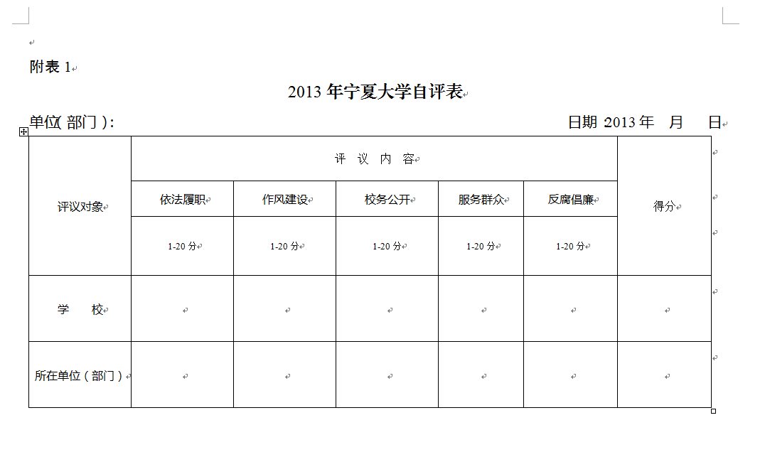 2013年单位(部门)自评表》(附表1)和《排列五