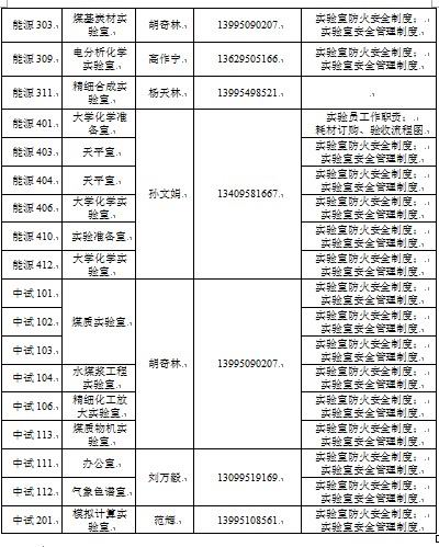 5、学院实验室的地点和实验室责任人以及联系方式和制度列表。