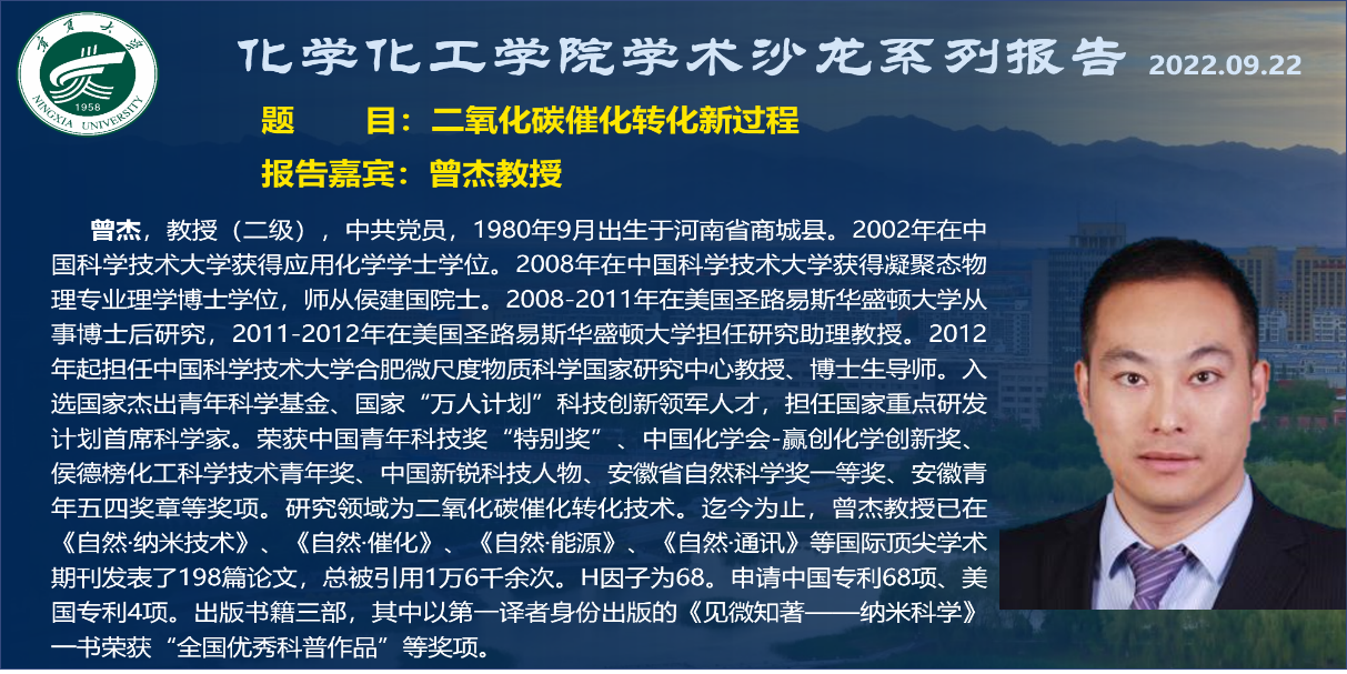 2022年秋季学术沙龙系列报告会在线上举行,国家新世纪学术带头人、国家重点研发计划首席科学家、中国科学技术大学曾杰教授做了题为“二氧化碳催化转化新过程”的报告。排列五