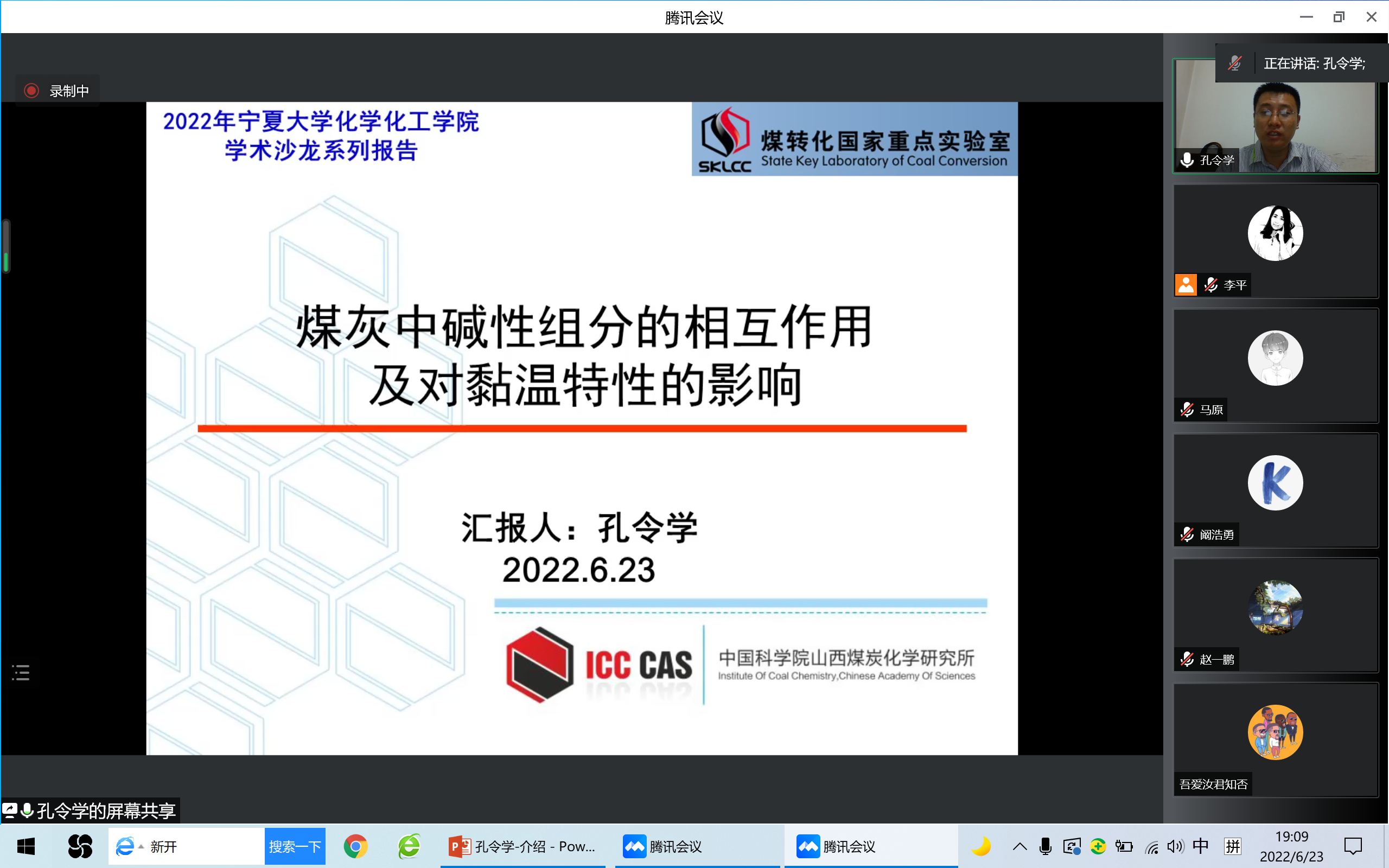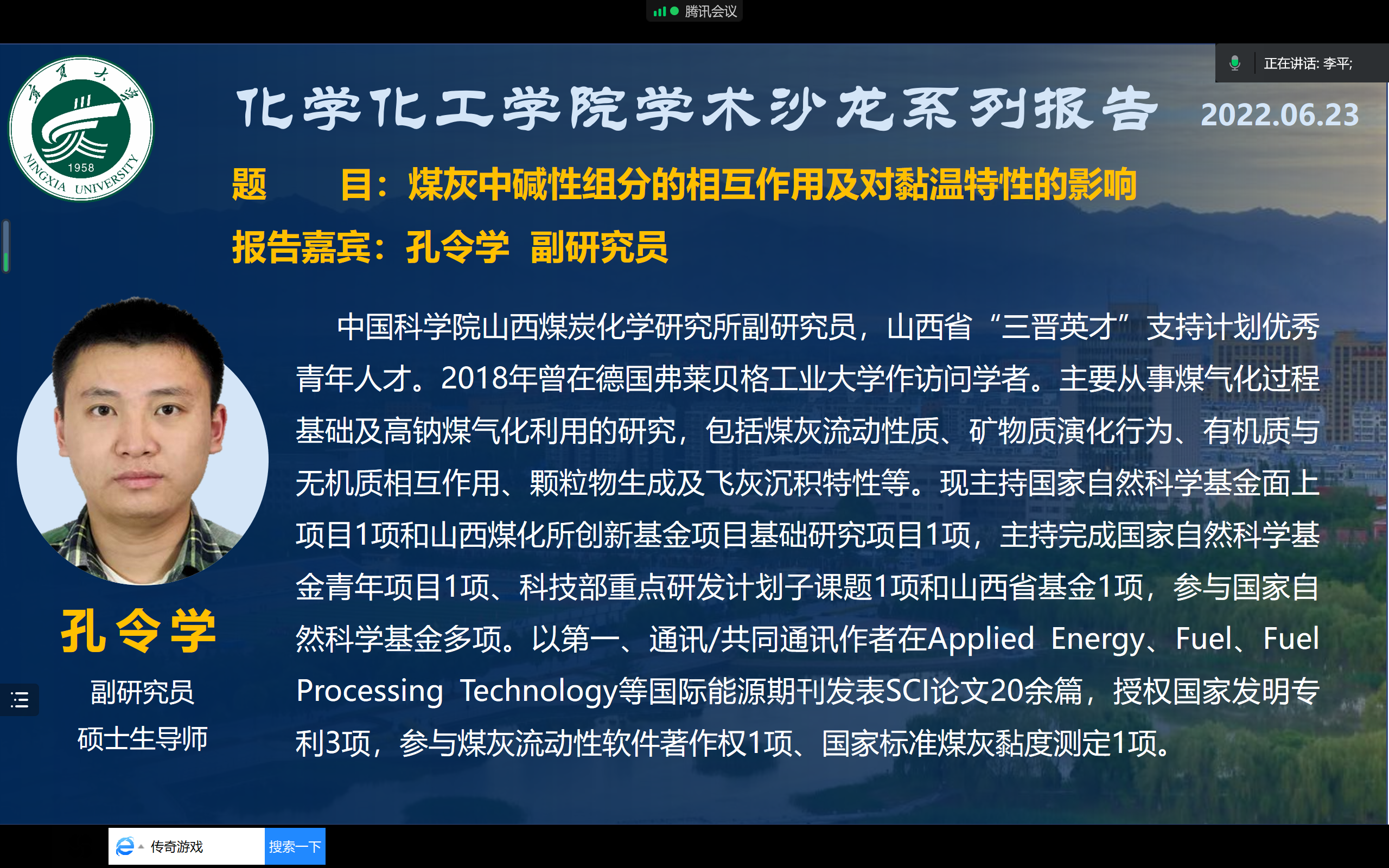 学术沙龙活动邀请中国科学院山西煤炭化学研究所孔令学副研究员开展了题为“煤灰中碱性组分的相互作用及对黏温特性的影响”的学术报告,