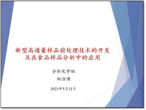 郑浩博博士以“新型高通量样品前处理技术的开发及在食品样品分析中的应用”为题,解读了“减少样品前处理用时,提高处理通量”在分析化学相关研究中的重要性,介绍了新型分离介质的制备策略及以磁固相萃取为代表的样品前处理技术在食品样品分析中的应用情况。