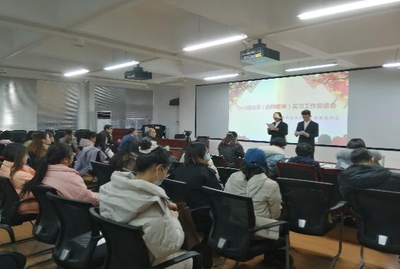 115室召开教育实习总结会。此次实习总结大会由化学(教师教育)学科组组织,参加此次实习汇报的师生有学院领导李冰、中学实习点指导教师代表郑淑萍、本院各教育实习点指导老师以及2018级、2019级化学(教师教育)专业全体学生。