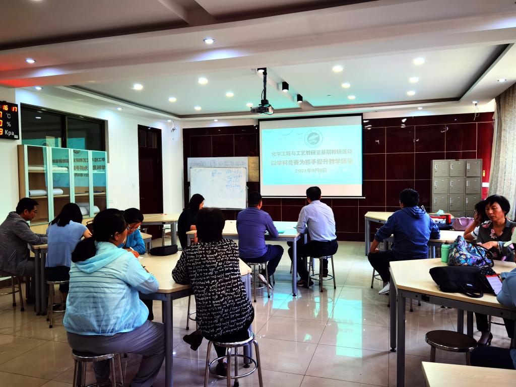 2021年9月8日下午化学工程与工艺教研室全体教师在工科C楼202开展了学校基础教学组织建设年系列活动,进行以学科竞赛为抓手提高教学质量教研活动。