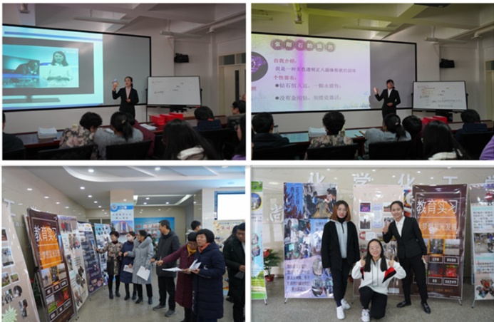 此次实习汇报内容主要包括实习活动(5分钟实习短视频分享、10分钟模拟授课及海报展示)汇报和实习作业(实习手册、实习总结、主题班会、课堂教学视频、教学设计等)评价两个环节。短视频生动地再现了实习生们在各自实习学校经历的生活点滴:初为人师后角色转换的心情、第一次走上讲台的忐忑、与学生相处时的温馨快乐、指导老师的谆谆教导以及最后离开的不舍……一幕一幕,弥足珍贵。在微课授课环节中,各实习小组代表都展现出了各自的教学特色,根据新课程标准设置教学目标,结合生活实例设计教学内容,渗透“课程思政”教育理念,充分运用所学教学技能和教学方法突破教学重难点,一展教师风采。
