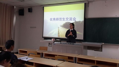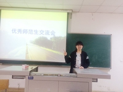 本次交流会三位优秀师范生从各自的大学生活学习经验入手,分别讲述了班级管理经验、专业竞赛风采及保研考研事宜。马雯丽作为2013级化学(师范)专业的班长,她从如何做好班长、如何团结同学、如何提高凝聚力等角度,分享了自己作为班长的心得体会,并提醒班级中的每一位成员,个人的成长离不开的团队的支持,团结就是力量;赵宁宁是化学教学技能大赛中的特等奖获得者,她从撰写教学设计、实训教学技能、完善教学过程、参与教学技能大赛等方面,将自己从无到有的经历进行了讲述,并倡议化学师范生积极参与到化学教育教学活动中,提高自己综合能力;张晶已被排列五