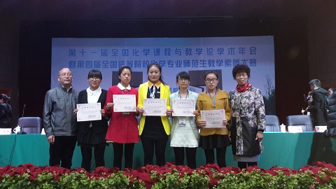 11级本科师范生分别在此次大赛的“教学设计大赛”和“说课大赛”中喜获佳绩,共获“教学设计”大赛学生陈思彤等一等奖5名,“现场说课”大赛学生王希霞特等奖1名、黑晓霞等一等奖4名。吴晓红老师、杨文远老师、化学课程与教学论硕士研究生毕吉利、高霞、孙婕、任斌、黄金莎、肖敏、李文婷等获“优秀指导教师奖”。
